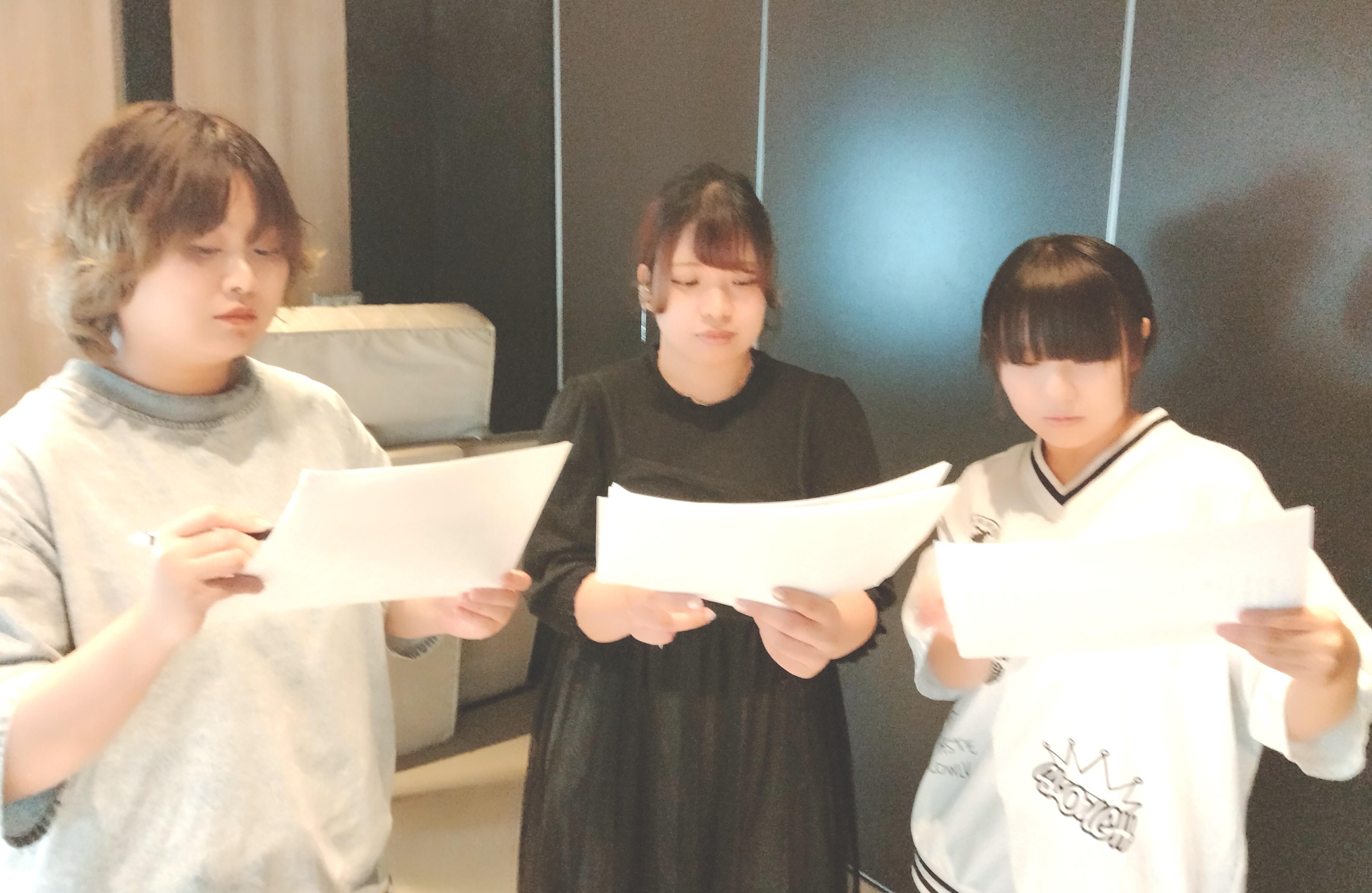 この日は 、アフレコ台本を使って、二人一組になりセリフのレッスンです。台本の内容を どう読み取るのか、それを どう表現するのか、リアルなセリフとは何なのか 等を実践的に学んでいきます。